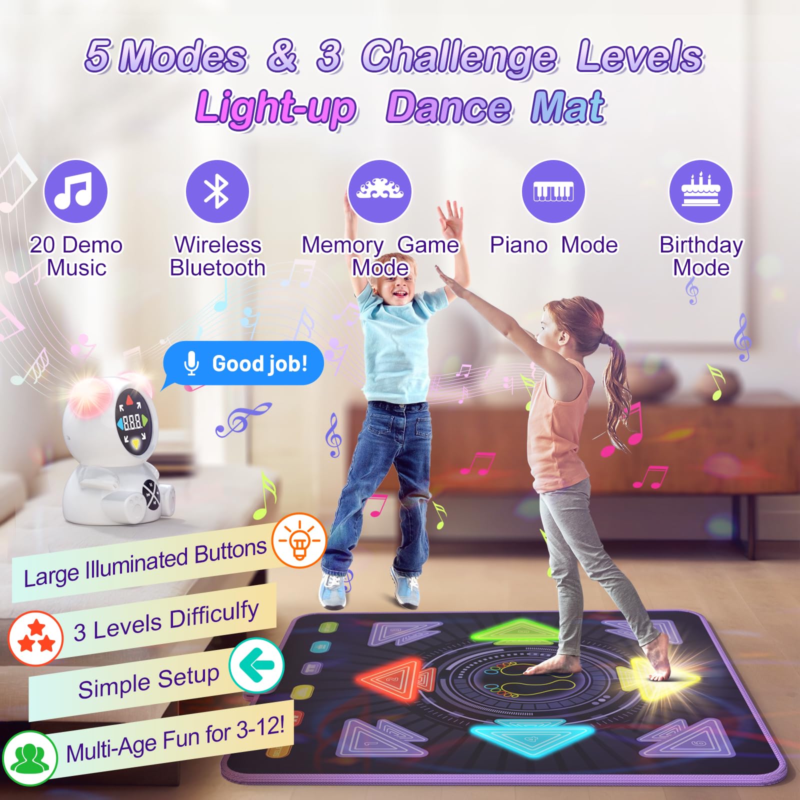 • Parent-Approved Gift: 🎁 Ideal Birthday/Holiday Gift for Girls and Boys. Replace screen time with energetic dance challenges! This dance mat encourages kids to move, play, and stay away from electronic device addiction. It enhances reflexes, focus, coordination, and teamwork skills. Kids learn to take turns, cheer for teammates, and build resilience. An ideal gift for every occasion!